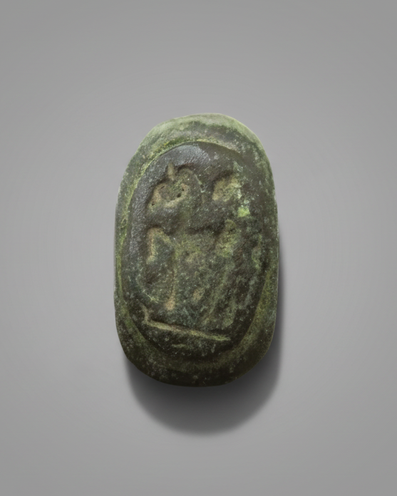 An exceptional example of Romano-British craftsmanship, it remains remarkably preserved, with its original form intact and the hand-carved bezel clearly legible. Its surface displays a rich, natural patina, varying from deep brown to subtle green, reflecting centuries spent in the acidic soils of Britain.