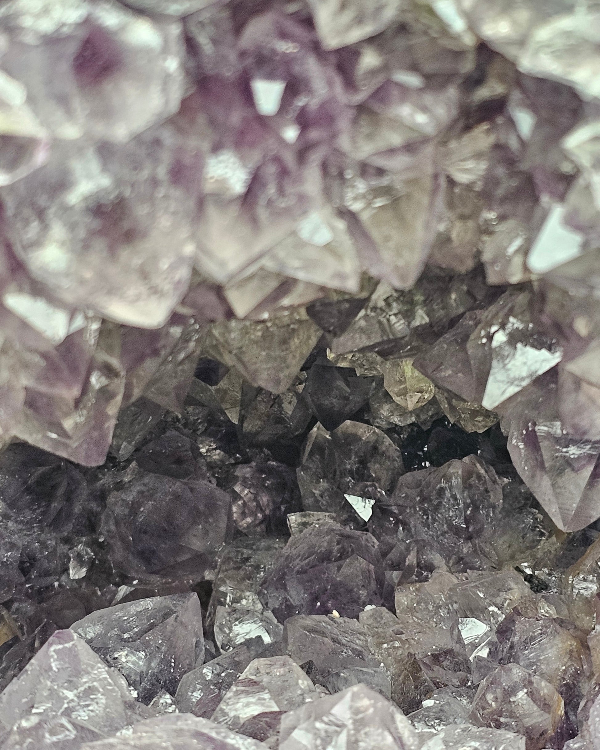 Formed over 135 million years ago within volcanic rock, this geode began as a hollow cavity in ancient lava flows. Over time, silica-rich fluids seeped in, slowly crystallising into the amethyst we see today. The result is a natural time capsule — both a display of geological wonder and a collector’s treasure.