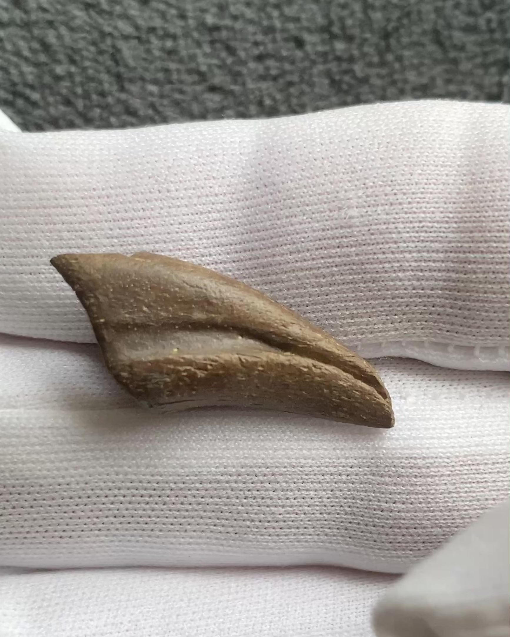 Its lightly curved, robust morphology, pronounced blood groove, and sharp tip provide a rare and detailed glimpse into the predatory specialization of Dromaeosauridae.