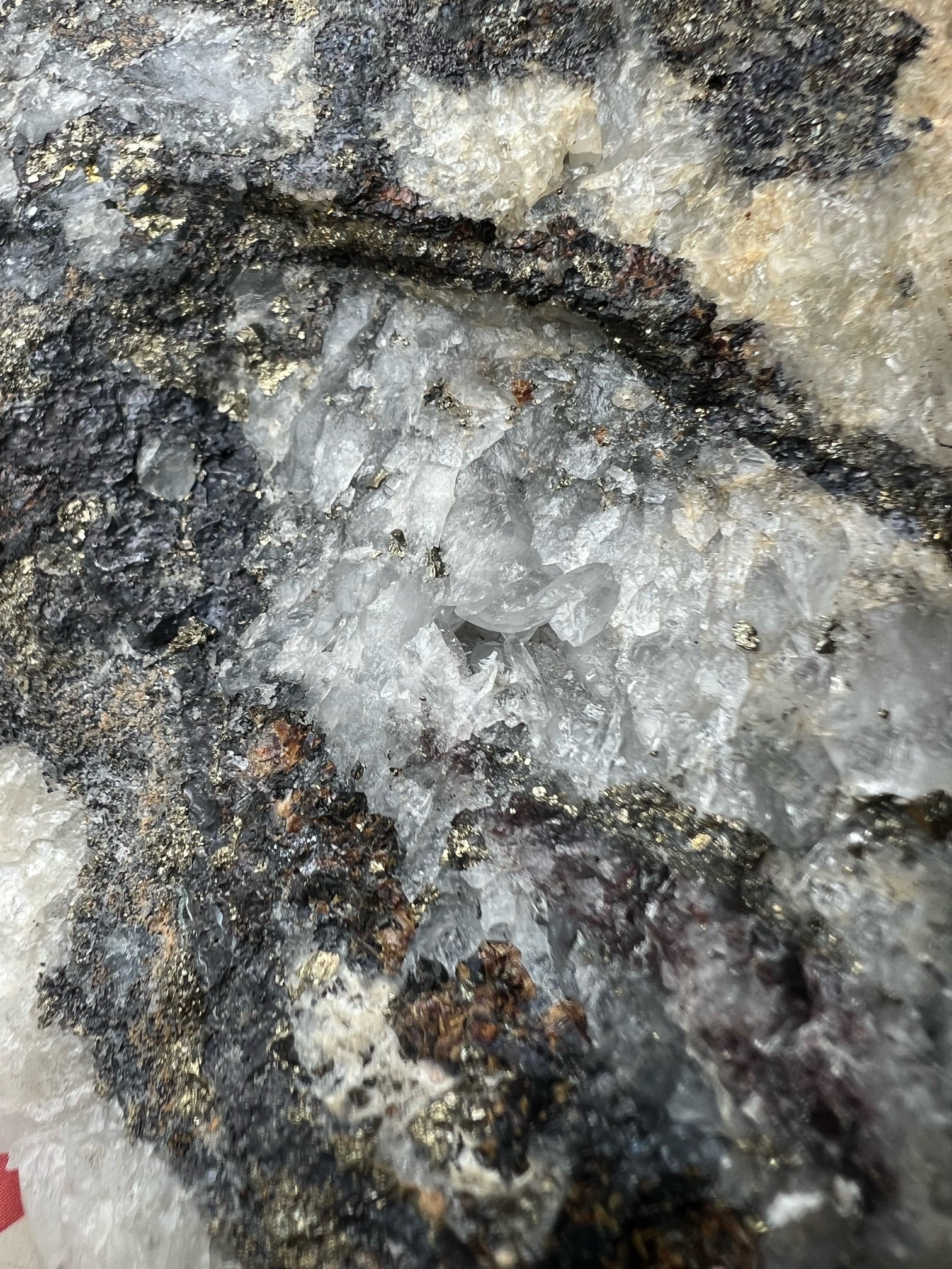 Composition: Druzy Cubic Pyrite on Quartz Cluster