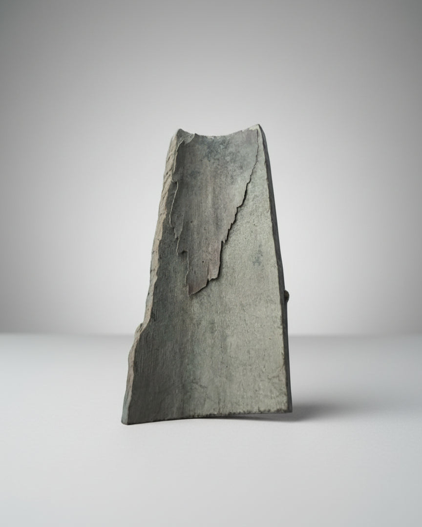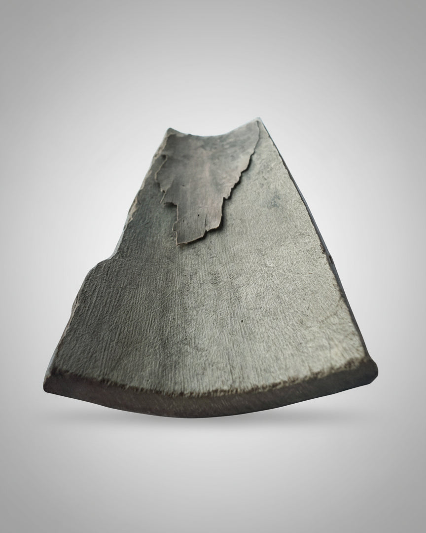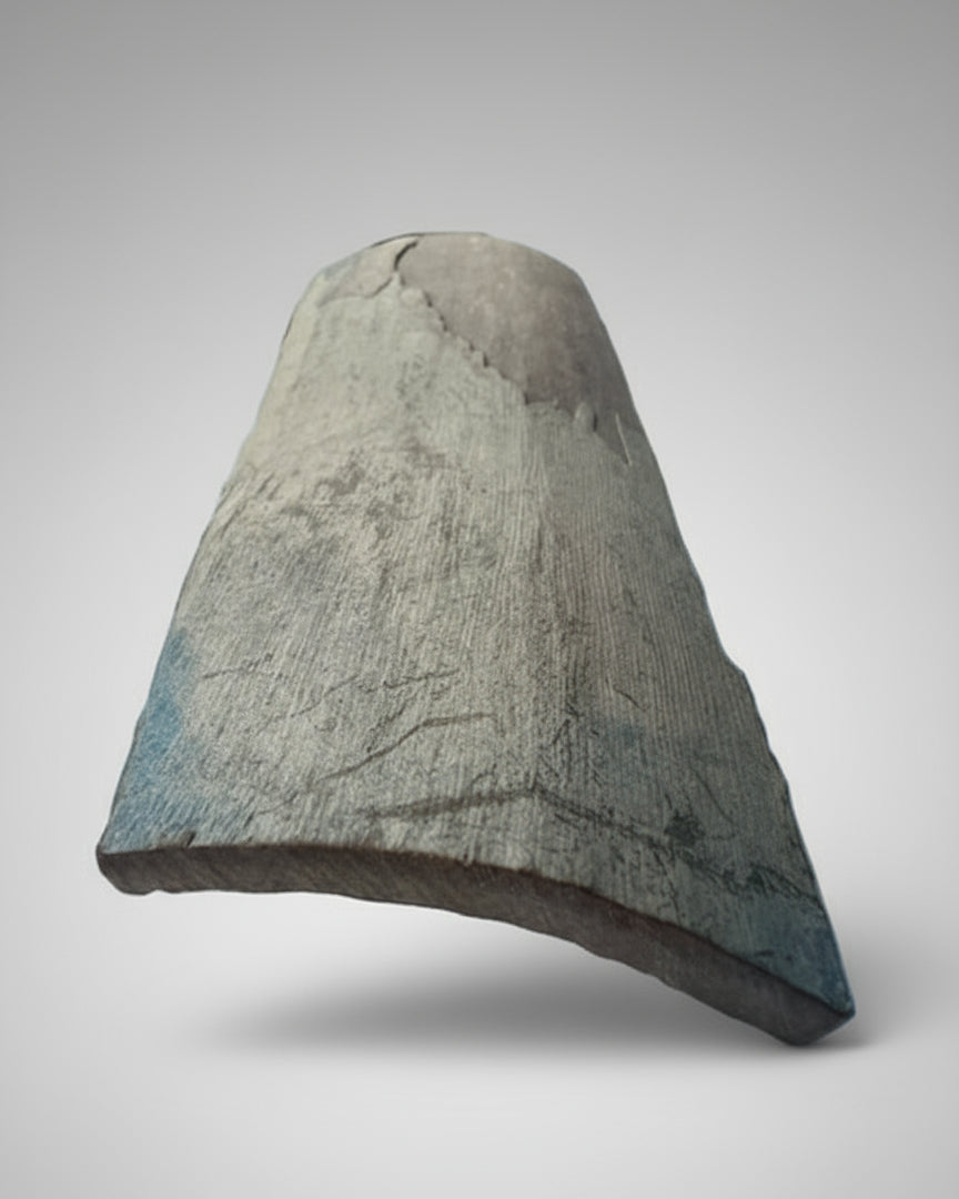 This section of tusk bark has a lovely patina, with natural unpolished character and displaying small amounts of blue mineralization. Its colorations and texture changes are thanks to the Siberian permafrost sealing it from the outside world for the last approximately 30,000 years. Every change of color and texture resembles a moment in time that took place during this period.