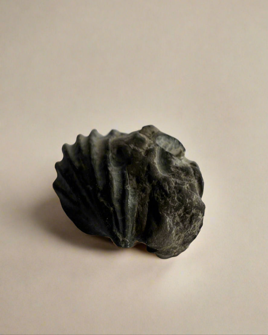 This fossil bivalve, Birostrina sulcata, comes from the famous Gault Clay of Folkestone, a site renowned for its beautifully preserved Cretaceous fossils. Bivalves are members of the mollusc family, related to modern clams and mussels, and lived buried in the ancient chalk seabed.
