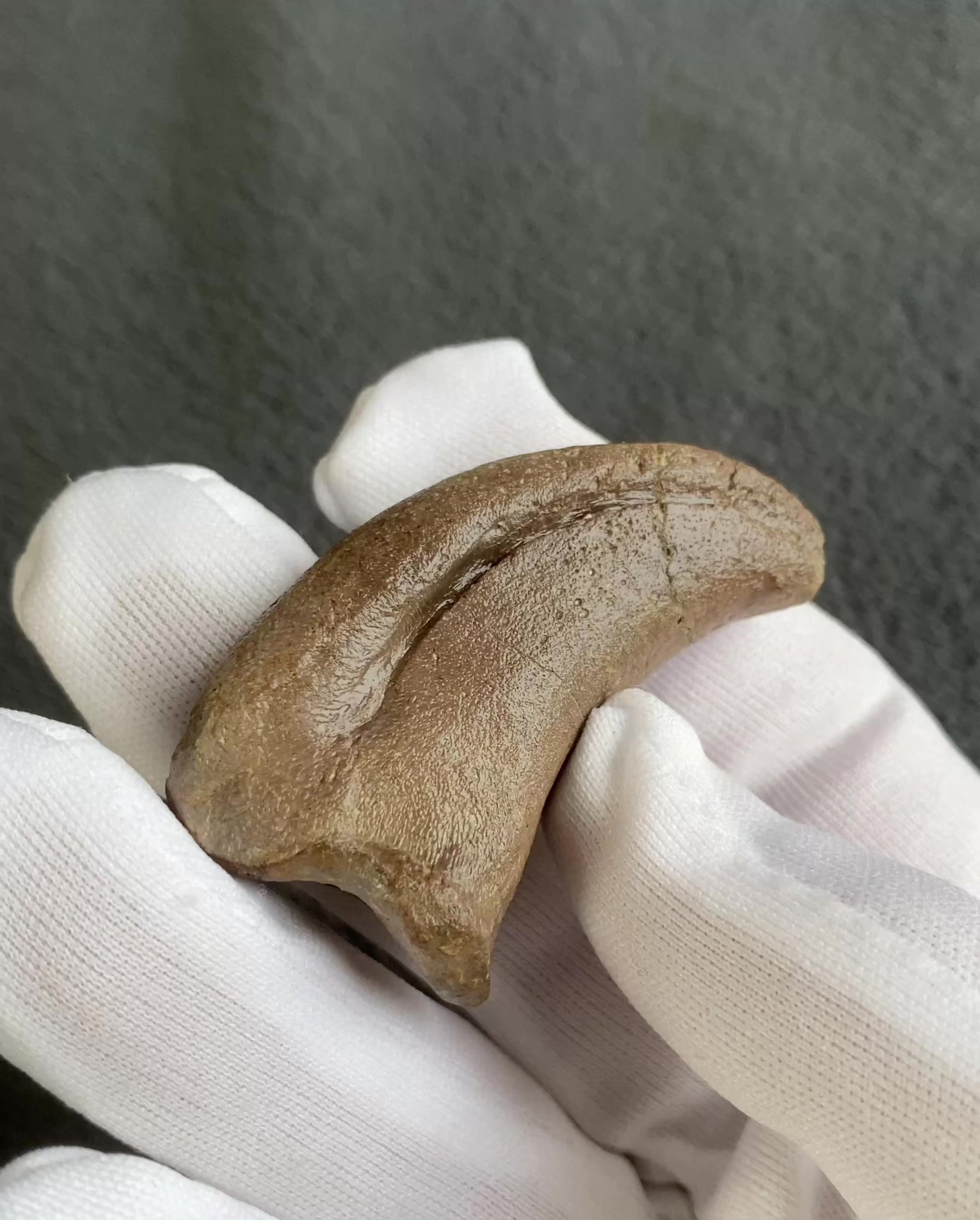 Measuring approximately 5.5 cm in length, 3.5 cm in height, and 2 cm in proximal width, the claw exhibits the robust, gently recurved morphology characteristic of a weight-bearing left pedal ungual from a small to medium-sized sauropod of the Jurassic Eusauropoda group , offering a rare and detailed glimpse into the anatomy of Madagascar’s iconic island dinosaurs.